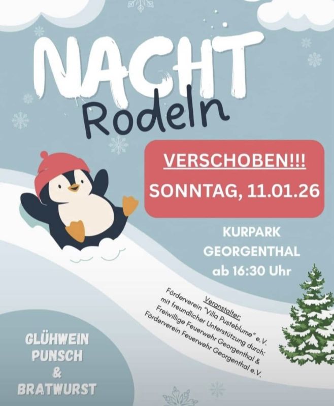 Der Förderverein Villa Pusteblume e.V. mit freundlicher Unterstützung durch die Freiwillige Feuerwehr Georgenthal & den Förderverein Feuerwehr Georgenthal laden zum Nachtrodeln nach Georgenthal.