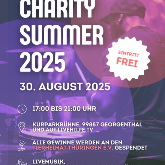 Erlebe auch in diesem Jahr wieder unseren #CharitySummer - im Livestream und vor-Ort auf der Kurpark-Bühne in Georgenthal.