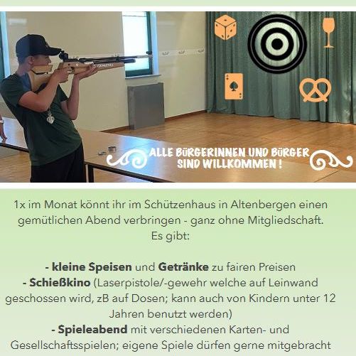 1x im Monat könnt ihr im Schützenhaus in Altenbergen einen gemütlichen Abend verbringen.